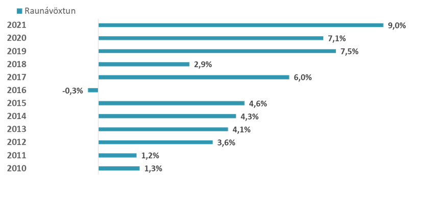 Ávöxtun ársins 2021 var góð og hækkuðu hreinar tekjur af eignarhlutum um 85% milli ára. Það skýrist einkum af miklum hækkunum á hlutabréfamörkuðum en vísitala skráðra hlutabréfa á aðallista Kauphallar hækkaði til að mynda um 41,2%. Fjárfestingar sjóðsins á erlendum mörkuðum skiluðu einnig góðri ávöxtun samhliða veikingu krónunnar. Áhrif heimsfaraldurs gætti nokkuð á árinu og voru sveiflur á markaði í takt við stöðu faraldursins. Stýrivextir náðu lágmarki í lok árs en verðbólga hefur síðan stigmagnast bæði hér á landi og erlendis.